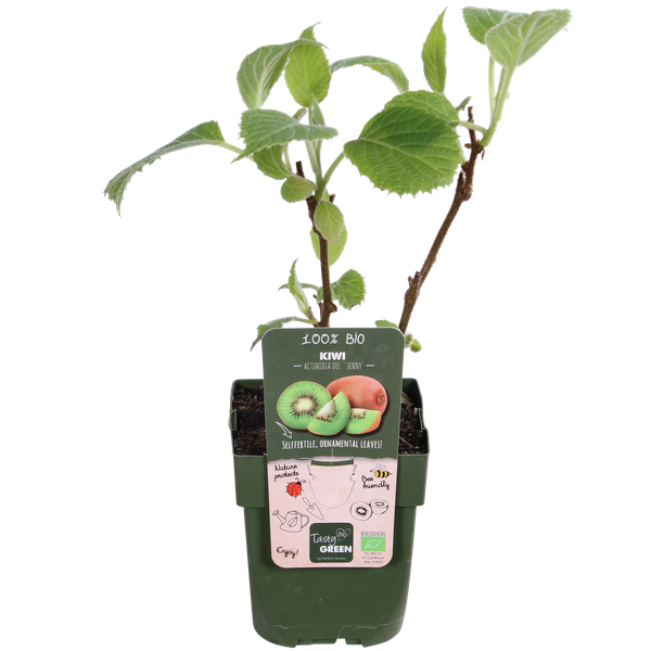 - Zelfbestuivend: De ‘Jenny’ is een tweeslachtige kiwi, wat betekent dat je geen mannelijke plant nodig hebt voor bestuiving. Dit maakt het kweken van kiwi’s eenvoudiger en toegankelijker.