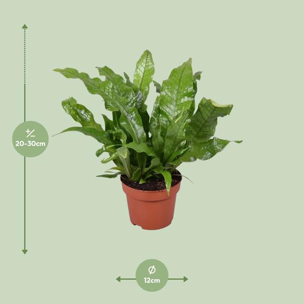 Breng een stukje tropisch regenwoud naar je huis met de Microsorum Crocodyllus, beter bekend als de Crocodile Fern. Deze unieke varen valt op door zijn leerachtige, glanzende bladeren die doen denken aan krokodillenhuid. Met een hoogte van ongeveer 40 cm en een potmaat van Ø12 cm is deze plant een opvallende toevoeging aan elke ruimte. Of je nu een ervaren plantenliefhebber bent of net begint met het verzorgen van kamerplanten, de Microsorum Crocodyllus is een onderhoudsarme en decoratieve keuze.