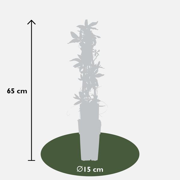 • Standplaats: Kies een zonnige plek, bij voorkeur tegen een muur of hekwerk waar de plant tegenaan kan klimmen.
