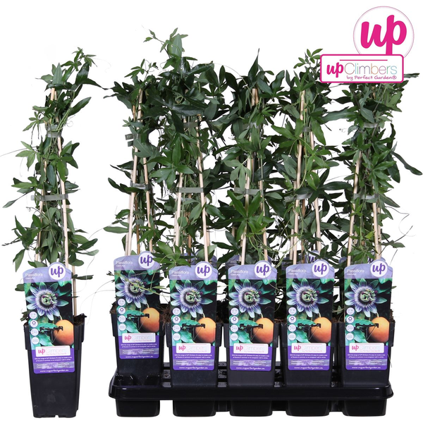 Breng een tropisch accent in je tuin of op je balkon met de Passiflora Blue caerulea.