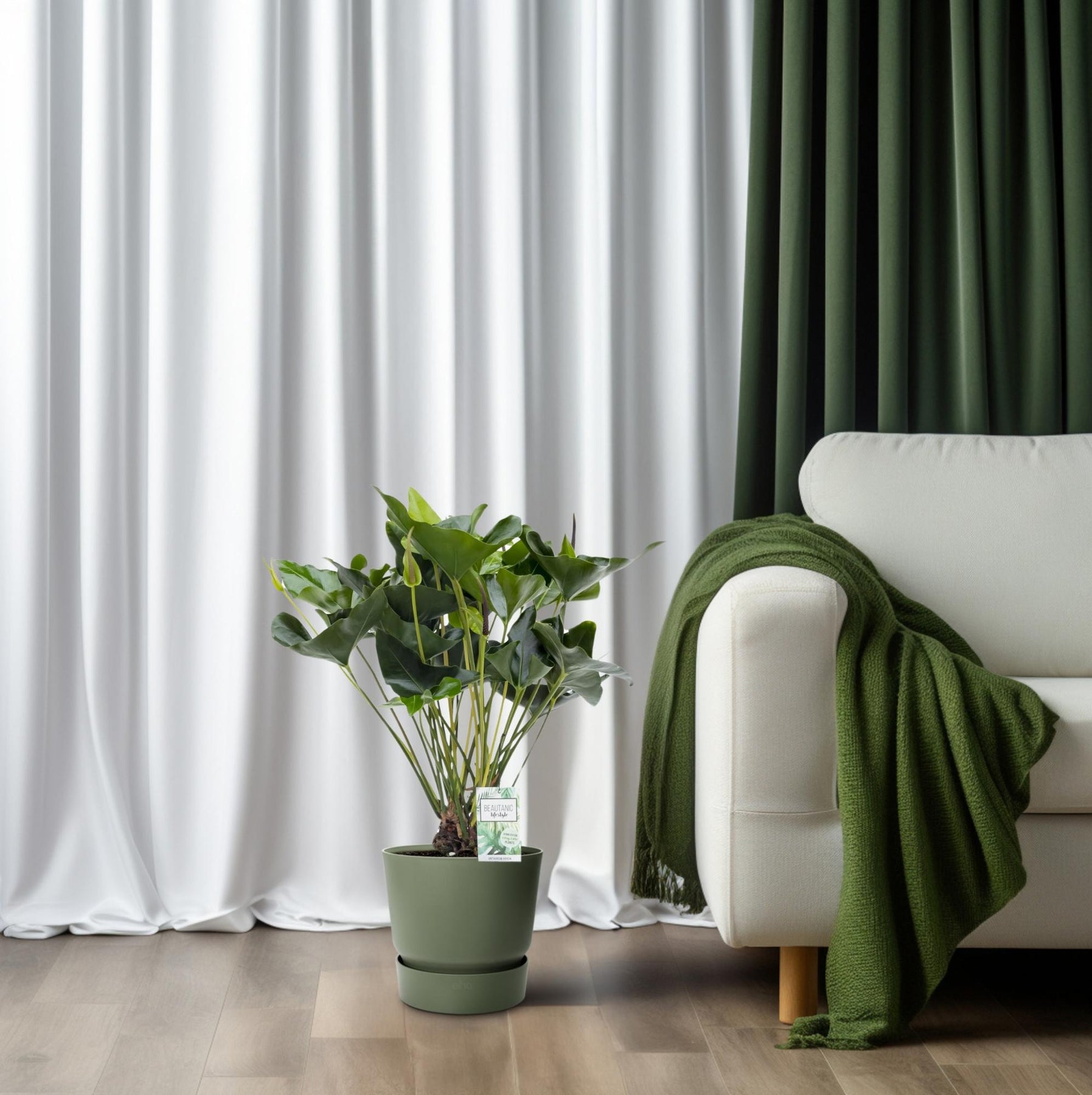 Anthurium is een populaire kamerplant die bekend staat om zijn levendige en langdurige bloemen. Oorspronkelijk afkomstig uit de tropische regio's van Centraal- en Zuid-Amerika, gedijt Anthurium goed in warme en vochtige omgevingen. Zijn hartvormige bladeren en kleurrijke bloemen maken het een visueel verbluffende toevoeging aan elke binnenruimte.