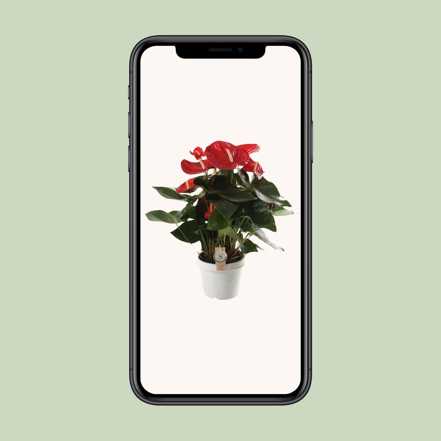 - Het opvallende uiterlijk van de Anthurium bestaat uit glanzende, hartvormige bladeren en levendige, langdurige bloemen.