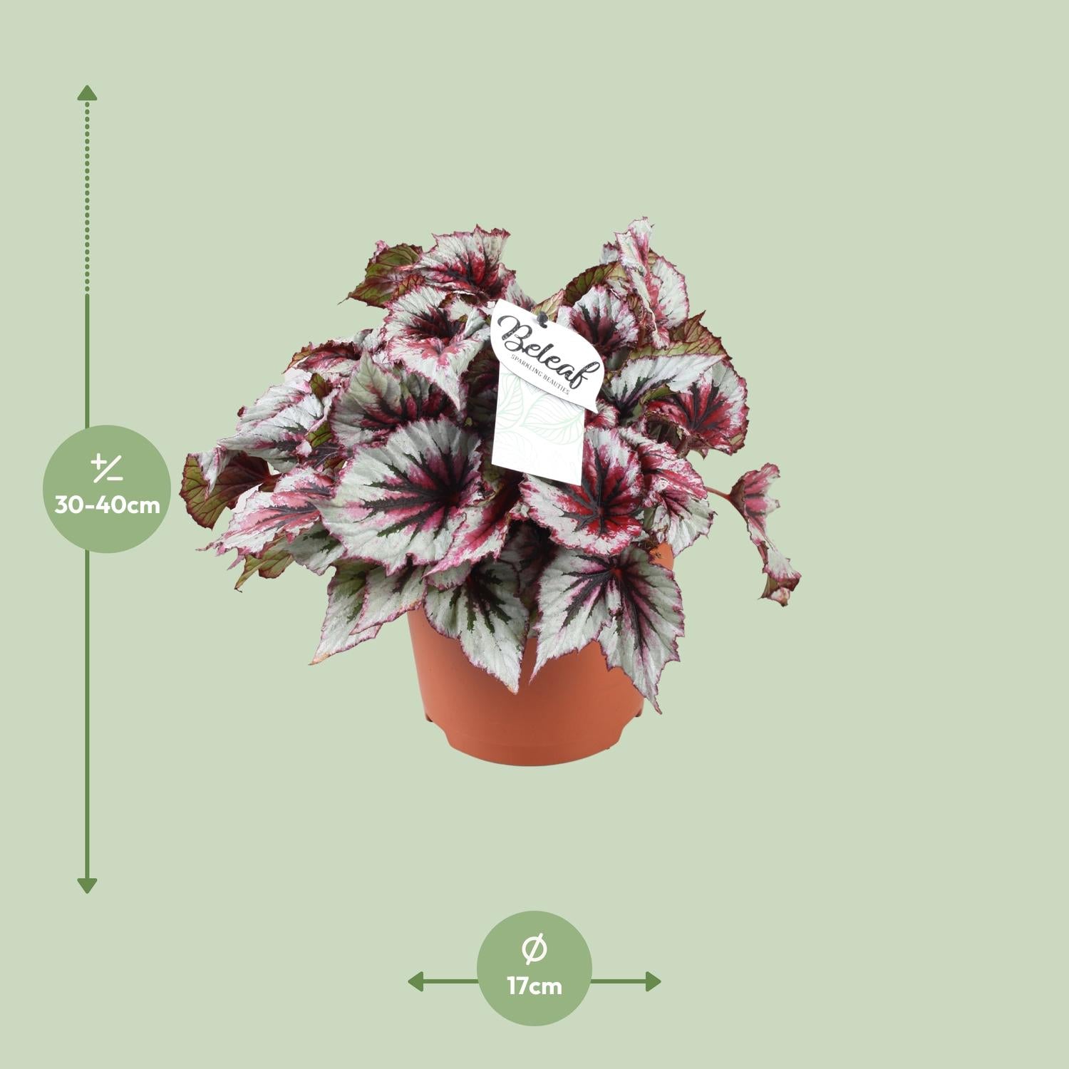 Ervaar de betoverende schoonheid van Begonia Beleaf Evening Glow, een prachtige kamerplant die een vleugje helderheid toevoegt aan elke ruimte. Ook bekend als Begonia, komt deze betoverende plant oorspronkelijk uit de tropische regio's van Zuid-Amerika. Zijn levendige, veelkleurige bladeren hebben een uniek patroon dat doet denken aan de gloed van een betoverende zonsondergang. Met zijn lage onderhoudsvereisten en het vermogen om te gedijen in binnenomgevingen, is Begonia Beleaf Evening Glow een perfecte keuze voor elke plantenliefhebber die wat kleur en elegantie in huis wil brengen. Begonia is een plant die gedijt op een locatie met en regelmatig water nodig heeft. Het heeft de voorkeur om goed doorlatende grond te hebben om wortelrot te voorkomen. Om de plant gezond te houden, wordt aanbevolen om deze elke 4-6 weken tijdens het groeiseizoen te bemesten met een evenwichtige meststof. Bovendien profiteren begonia's van een locatie met helder, indirect licht. Door de juiste verzorging en aandacht zal de begonia plant mooi en gedijend zijn.Leuk feitje: De Begonia Beleaf Evening Glow is als een zonsondergang gevangen in een pot! De levendige bladeren beginnen met diepe groene tinten en veranderen geleidelijk in prachtige roze, oranje en gele kleuren. Deze opvallende begonia-variant is perfect om een vleugje kleur toe te voegen aan elke binnen- of buitenruimte. Het is echter belangrijk om op te merken dat deze begonia puur decoratief is en niet bedoeld is om te consumeren. Dus, leun achterover, ontspan en geniet van het visuele meesterwerk dat deze plant te bieden heeft!De Begonia Beleaf Evening Glow heeft een potmaat van 17 cm, waardoor hij perfect is voor kleine tot middelgrote ruimtes.- Deze mooie plant bereikt een hoogte van ongeveer 33 cm en voegt een vleugje elegantie toe aan elke kamer of buitenruimte.- De Begonia Beleaf Evening Glow is een variëteit van de Begonia plant, wereldwijd erkend om zijn opvallende bladeren en levendige kleuren.- Deze bijzondere Begonia gedijt goed op een plek met helder, indirect zonlicht, waardoor hij ideaal is voor plaatsing bij een raam of in een gedeeltelijk schaduwrijke omgeving.- Leuk feitje: Begonia's zijn vernoemd naar Michel Bégon, een Franse botanicus die bevriend was met Linnaeus, de vader van de moderne taxonomie. Het Begonia geslacht is naar hem vernoemd.