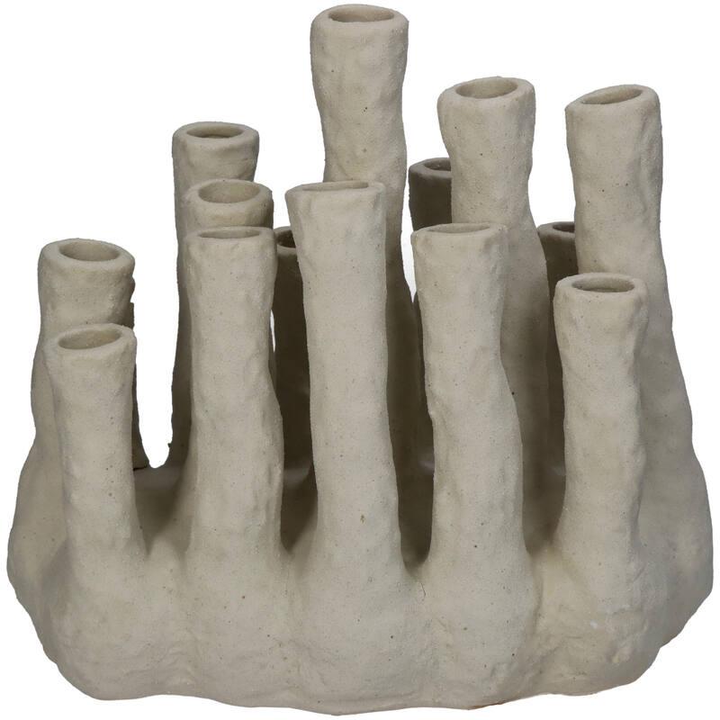 Deze bloemenhouder XL in koraalvorm is een opvallend en stijlvol decorstuk dat organische elegantie toevoegt aan je interieur. De ecru kleur en matte afwerking geven hem een natuurlijke uitstraling die perfect past bij boho, landelijk of modern wonen. De vele tuiten maken hem ideaal voor speelse bloemcomposities of droogbloemen.