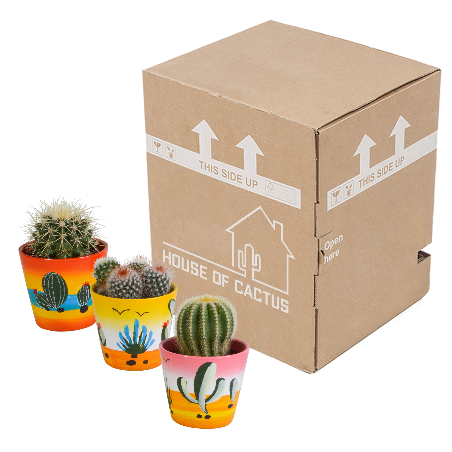 Wat een bolle boel in deze mix! Deze mix bestaat uit 3 bolcactussen die in kleur, hoogte én vorm van elkaar verschillen. De bolcactussen komen rechtstreeks van de kweker en zijn dus van de hoogste kwaliteit. Deze mix van bollen wordt geleverd in een handgeschilderde Mexicaanse pot.