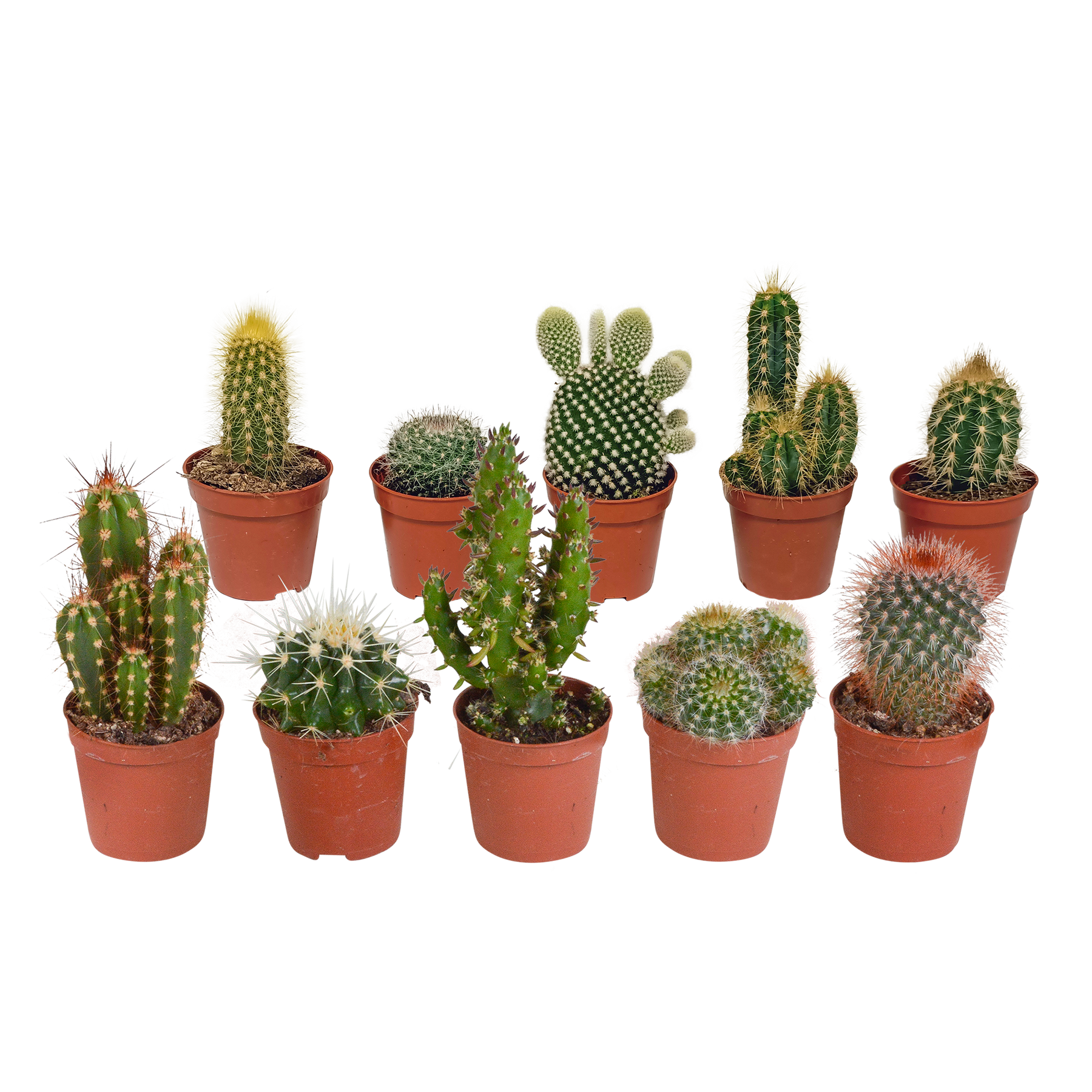 Wat een plaatje! Deze mix bestaat uit 10 cactussen die in kleur, hoogte én vorm van elkaar verschillen. De cactussen komen rechtstreeks van de kweker en zijn dus van de hoogste kwaliteit.