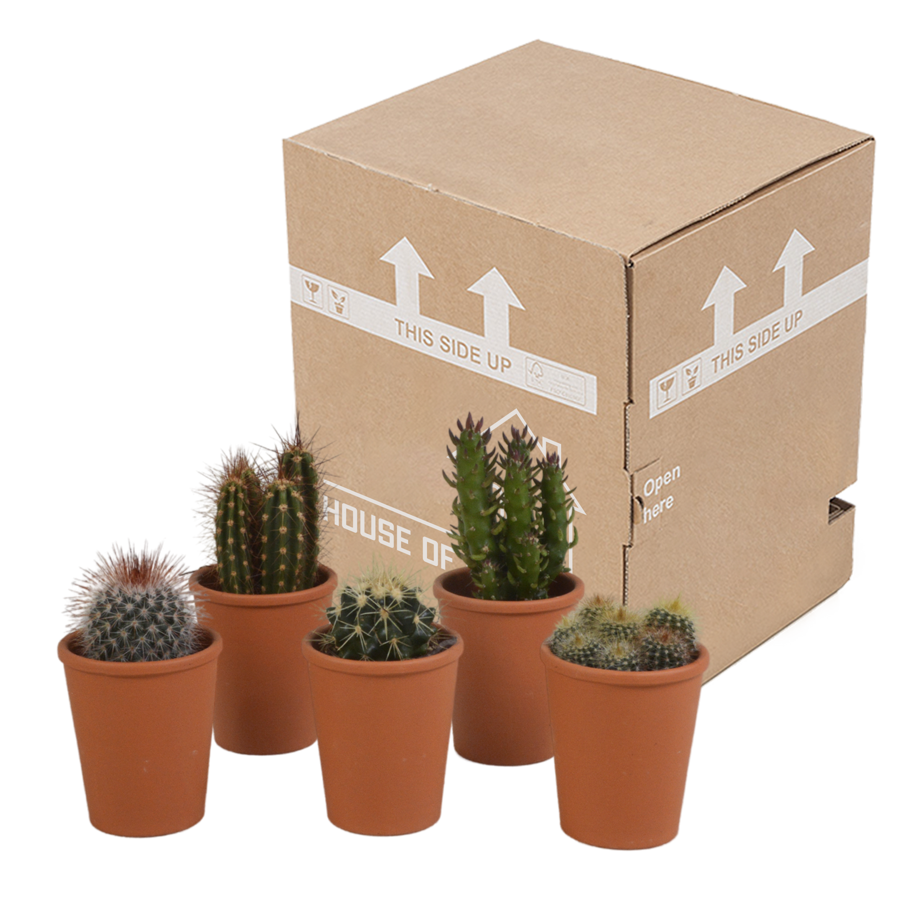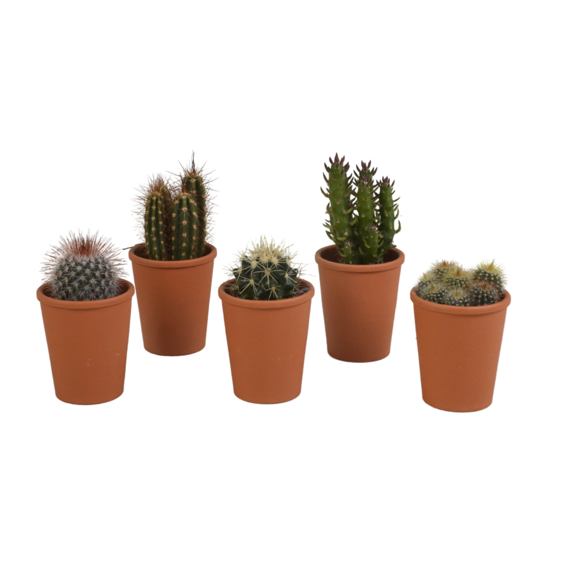 Wat een plaatje! Deze mix bestaat uit 5 cactussen die in kleur, hoogte én vorm van elkaar verschillen. De cactussen komen rechtstreeks van de kweker en zijn dus van de hoogste kwaliteit. Deze mix van parels wordt geleverd in een mediterrane terracotta pot.