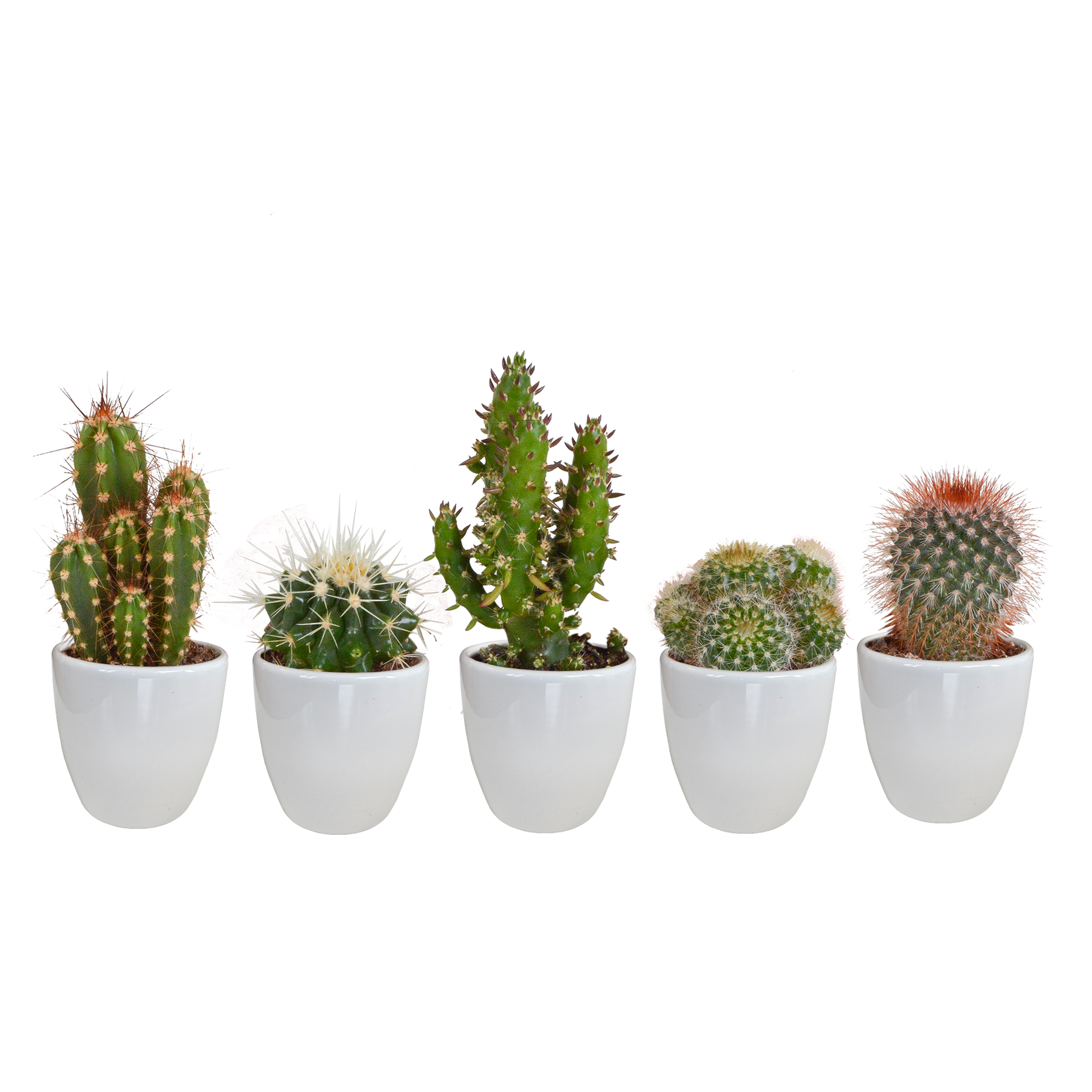 Wat een plaatje! Deze mix bestaat uit 5 cactussen die in kleur, hoogte én vorm van elkaar verschillen. De cactussen komen rechtstreeks van de kweker en zijn dus van de hoogste kwaliteit. Deze mix van parels wordt geleverd in een witte pot.