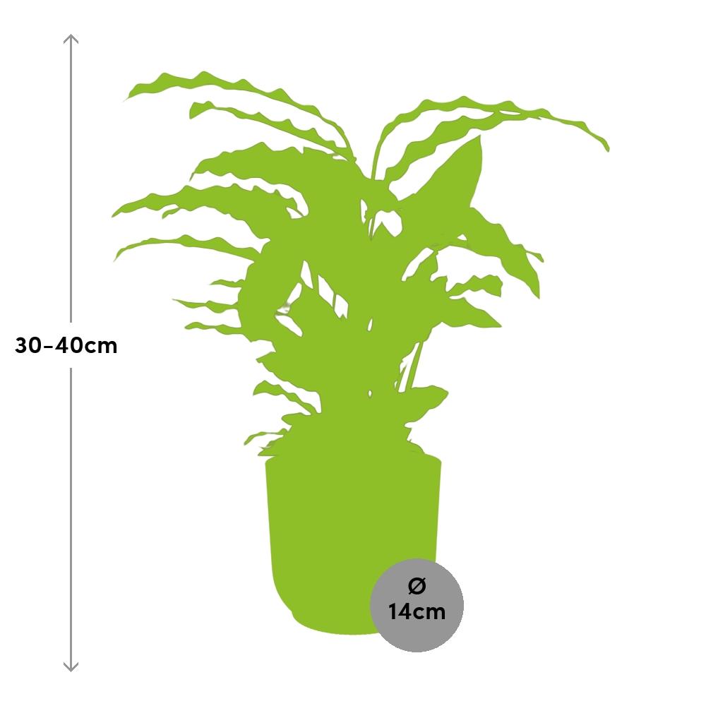 In zijn natuurlijke habitat groeit Calathea in de ondergroei van dichte bossen, waar hij gefilterd zonlicht en vochtige grond krijgt. Dit maakt het een ideale keuze voor binnenruimtes die deze omstandigheden nabootsen. De levendige gebladerte van de plant voegt niet alleen een vleugje schoonheid toe aan elke kamer, maar helpt ook de luchtkwaliteit te verbeteren door giftige stoffen te verwijderen en zuurstof vrij te geven. Met de juiste verzorging en aandacht kan Calathea een geweldige aanvulling zijn op elke binnen tuin.