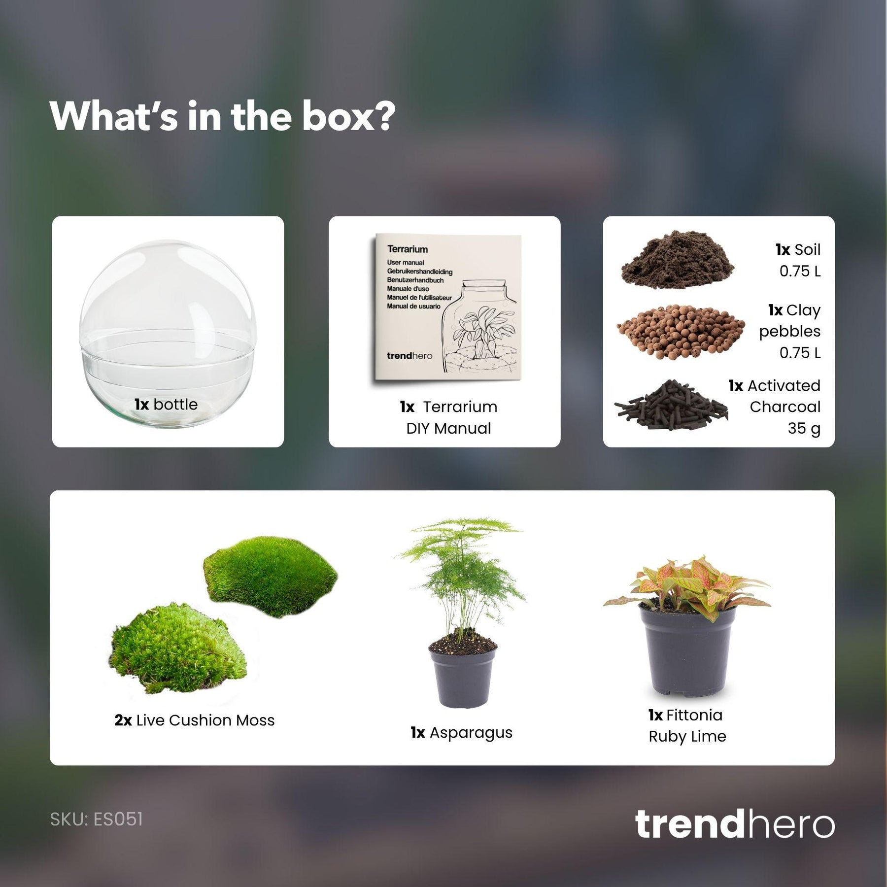 Onze Do-It-Yourself (DIY) planten terrariums worden geleverd als een DIY pakket. Na ontvangst zet jij met het meegeleverde 5-stappenplan in een handomdraai je nieuwe groene vriend in elkaar.