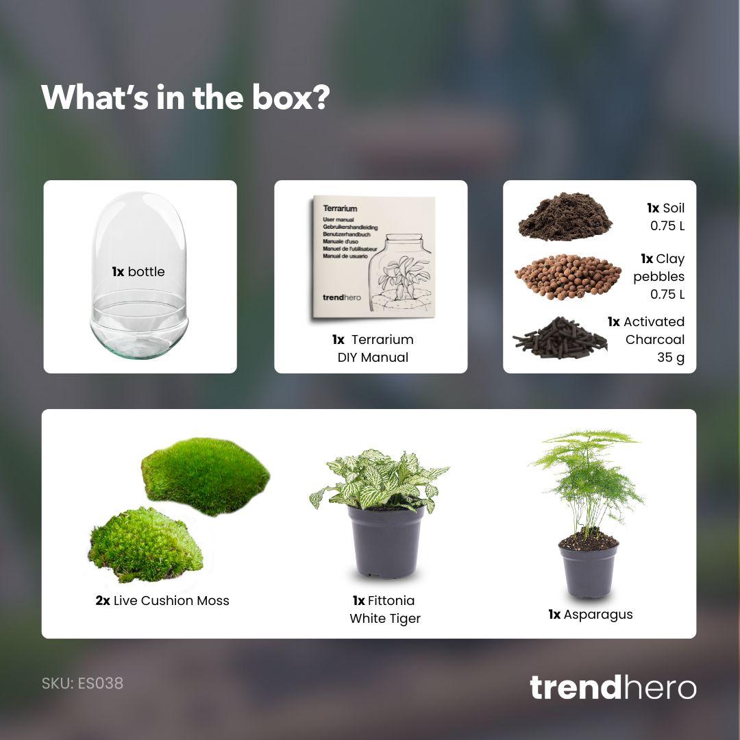 Onze Do-It-Yourself (DIY) planten terrariums worden geleverd als een DIY pakket. Na ontvangst zet jij met het meegeleverde 5-stappenplan in een handomdraai je nieuwe groene vriend in elkaar.