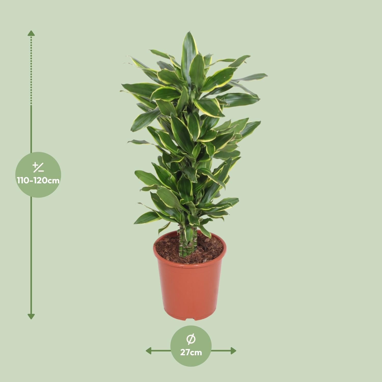 Maak kennis met Dracaena Golden Coast, de perfecte kamerplant die een vleugje elegantie brengt in elke ruimte. Het prachtige gouden blad van deze plant zal zeker betoveren en indruk maken. Ook bekend als de Drakenbloedboom, komt het oorspronkelijk uit de exotische bossen van tropische gebieden. Met zijn onderhoudsvriendelijke karakter en vermogen om de luchtkwaliteit te verbeteren, is het een must-have voor elke plantenliefhebber. Verbeter uw huis of kantoor met de schoonheid en veelzijdigheid van Dracaena Golden Coast. Bestel nu en ervaar de vreugde van het bezitten van deze opmerkelijke plant. Om voor Dracaena te zorgen, moet het op een plek geplaatst worden die halfschaduw krijgt, aangezien het geen direct zonlicht verdraagt. Eenmaal per week water geven is voldoende, waarbij ervoor gezorgd moet worden dat de grond vochtig blijft maar niet verzadigd is met water. Het ideale grondtype voor de Drakenbloedboom is goed doorlatende potgrond. Mest moet eenmaal per maand worden toegepast tijdens het groeiseizoen, met behulp van een evenwichtige vloeibare meststof. Het is belangrijk om niet te veel te bemesten, omdat dit kan leiden tot verbranding door meststoffen en schade aan de plant kan veroorzaken.Wist je dat Dracaena Golden Coast niet alleen een prachtige en onderhoudsvriendelijke kamerplant is, maar ook een natuurlijke luchtzuiveraar? De plant kan schadelijke gifstoffen uit de lucht verwijderen, waardoor het een perfecte toevoeging is aan elke binnenruimte. Met zijn levendige goudgele bladeren voegt deze plant een vleugje warmte en stijl toe aan elke kamer. Maar hoewel deze plant er misschien verleidelijk uitziet, is het belangrijk om te onthouden dat Dracaena Golden Coast strikt voor decoratieve doeleinden is en niet eetbaar is. Dus geniet van zijn schoonheid, maar bewaar je smaakpapillen voor andere heerlijke traktaties!- De Dracaena Golden Coast is een populaire kamerplant met een potmaat van 27 cm, waardoor hij geschikt is voor kleinere ruimtes of als decoratief element in grotere kamers.- Deze variant van de Dracaena groeit doorgaans tot een hoogte van ongeveer 120 cm, waardoor het een perfecte keuze is om groen en hoogte toe te voegen aan elke kamer.- De Dracaena Golden Coast staat ook bekend als de Drakenboom vanwege zijn unieke, draakachtige uiterlijk, met lange, slanke bladeren die lijken op de schubben van een mythisch wezen.- Deze plant gedijt goed in halfschaduw en is daardoor een veelzijdige optie voor verschillende lichtomstandigheden in uw huis of kantoor.- Leuk feitje: de Dracaena Golden Coast is niet alleen een mooie plant, maar staat ook bekend om zijn luchtzuiverende eigenschappen, die helpen bij het verbeteren van de algehele luchtkwaliteit in uw ruimte.