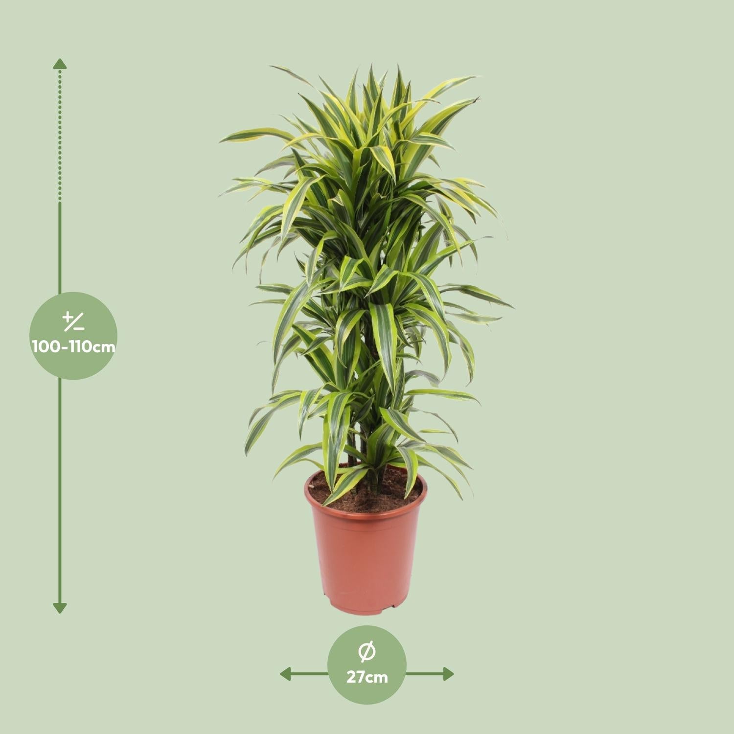 Hier is de vertaling van de Engelse tekst naar het Nederlands:Maak kennis met de Dracaena Lemon Lime, een levendige kamerplant die vaak bekend staat als de Draakboom. Met zijn prachtige groene en gele bladeren zal deze plant elke ruimte opfleuren. Hij komt oorspronkelijk uit Afrika en gedijt goed in omgevingen met weinig licht, waardoor het de perfecte toevoeging is voor thuis of op kantoor. De Dracaena Lemon Lime vereist weinig onderhoud en is gemakkelijk te verzorgen, waardoor het ideaal is voor drukke individuen. Verhoog de uitstraling van je ruimte met deze trendy kamerplant, die een vleugje natuur naar binnen brengt. Dracaena, ook bekend als Drakenboom, gedijt goed op een plek met halfschaduw, waardoor het perfect is voor binnen- of gedeeltelijk beschaduwde gebieden. Het heeft één keer per week water nodig, waarbij de grond tussen de gietbeurten iets mag opdrogen. Voor optimale groei wordt aanbevolen om Dracaena in goed doorlatende grond te planten, zoals een mengsel van potgrond en perliet. Wat betreft bemesting is het het beste om de plant elke twee maanden te voeden met een gebalanceerde kamerplantenmeststof tijdens de lente- en zomermaanden. Vergeet niet de instructies op de verpakking te volgen voor een juiste toepassing.Wist je dat Dracaena Lemon Lime, ook bekend als "de plant met citroenachtige vibes", geliefd is vanwege zijn levendige en heldergroene en gele bladeren? Deze prachtige kamerplant voegt een vleugje kleur en frisheid toe aan elke ruimte. Het is echter belangrijk op te merken dat hoewel de bladeren verleidelijk kunnen lijken, Dracaena Lemon Lime puur voor decoratieve doeleinden is en niet bedoeld is om geconsumeerd te worden. Dus geniet gerust van de schoonheid van deze plant, maar laat je smaakpapillen andere culinaire avonturen verkennen!- De Dracaena Lemon Lime is een populaire kamerplant die bekend staat om zijn levendige groene en gele bladeren.- Deze plant heeft meestal een potmaat van 27 cm, waardoor het een ideale keuze is voor kleinere ruimtes of tafeldecoraties.- Met een hoogte van ongeveer 110 cm kan de Dracaena Lemon Lime een vleugje elegantie toevoegen aan elke kamer.- Ook bekend als de Drakenbloedboom, wordt de Dracaena vaak geassocieerd met oude folklore en legendes.- Deze plant gedijt goed in gedeeltelijk schaduwrijke gebieden, waardoor het een uitstekende keuze is voor plekken met halfschaduw of gebieden met indirect zonlicht.- Leuk feitje: de Dracaena Lemon Lime is niet alleen visueel aantrekkelijk, maar is ook gevonden om de binnenluchtkwaliteit te verbeteren door het verwijderen van giftige stoffen en geuren.