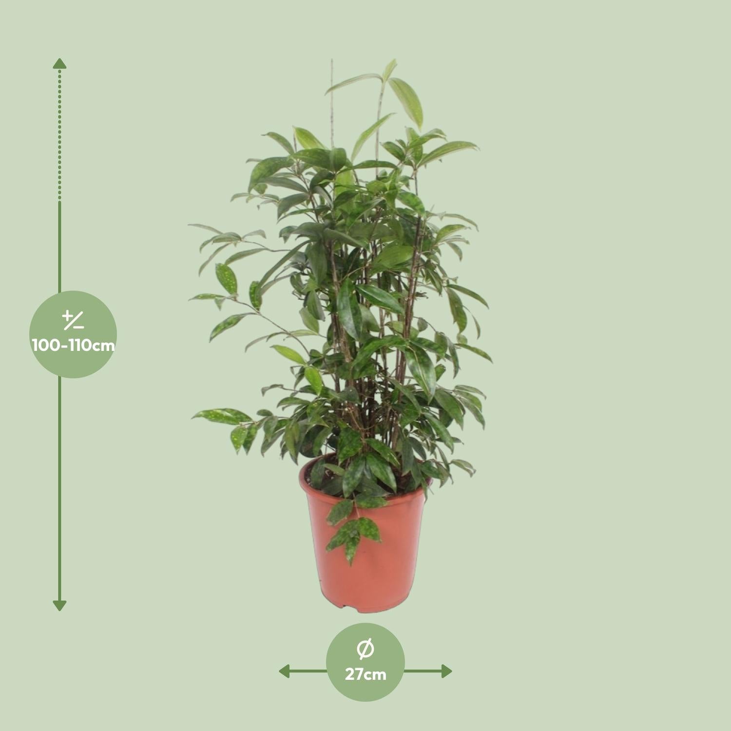 De Dracaena Surculosa, ook wel bekend als de Drakenboom, is een populaire kamerplant die een vleugje natuurlijke schoonheid toevoegt aan elke ruimte. De oorsprong van deze plant kan worden herleid naar tropische regio's in Afrika, waar het gedijt in vochtige omgevingen. Met zijn opvallende donkergroene bladeren en unieke patroonmarkeringen is deze plant zeker een prachtige aanvulling op uw huis of kantoor. Makkelijk te verzorgen en bekend om zijn luchtzuiverende eigenschappen, is de Dracaena Surculosa de perfecte keuze voor plantenliefhebbers die een onderhoudsarme maar visueel aantrekkelijke groene metgezel zoeken. Koop nu en haal de natuur naar binnen! Om voor Dracaena te zorgen, plaats het op een plek met halfschaduw, omdat het indirect zonlicht verkiest. Geef het eens per week water en zorg ervoor dat de grond vochtig is maar niet doorweekt. Gebruik goed doorlatende grond met een mix van potgrond, perliet en veenmos bij het planten van de Drakenbloedboom. Bemest de plant elke 2-4 weken tijdens het groeiseizoen (lente en zomer) met een evenwichtige vloeibare meststof. Vermijd overbemesting, omdat dit bladverbranding kan veroorzaken.Wist je dat Dracaena Surculosa, ook bekend als de "Lucky Bamboo," een populaire kamerplant is die zowel schoonheid als geluk in je huis brengt? Met zijn levendige groene en crèmekleurige bladeren voegt het een vleugje elegantie toe aan elke ruimte. Het is echter belangrijk om op te merken dat hoewel het op bamboe lijkt, het niet eetbaar is. Dus, verwen je ogen met deze prachtige plant, maar onthoud dat het alleen bedoeld is voor decoratieve doeleinden. Laat het Lucky Bamboo geluk en charme brengen in jouw omgeving!- Dracaena Surculosa, ook wel bekend als Drakenboom, is een populaire kamerplant met een potmaat van 27 cm.- Deze prachtige plant kan ongeveer 110 cm hoog worden, wat het een geweldige keuze maakt om een vleugje groen toe te voegen aan elke kamer.- Dracaena Surculosa gedijt het beste op een plek met halfschaduw, waardoor het ideaal is voor gebieden die gedurende de dag indirect zonlicht ontvangen.- Wist je dat Dracaena Surculosa niet alleen esthetisch aantrekkelijk is, maar ook luchtzuiverende eigenschappen heeft? Het helpt de luchtkwaliteit te verbeteren door schadelijke gifstoffen te filteren.- Dracaena Surculosa is een uitstekende keuze voor plantenliefhebbers die een vleugje exotische flair aan hun binnenruimte willen toevoegen. Zijn unieke blad en prachtige verschijning maken het een gespreksonderwerp.