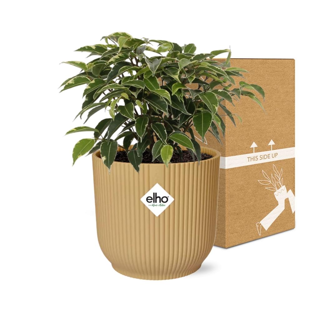 Ficus is een populaire kamerplant die gewaardeerd wordt om zijn esthetische aantrekkingskracht en luchtzuiverende eigenschappen. Oorspronkelijk afkomstig uit tropische en subtropische regio's, groeit Ficus van nature in diverse habitats, variërend van regenwouden tot droge, rotsachtige gebieden. Met meer dan 800 verschillende soorten zijn Ficus planten verkrijgbaar in diverse vormen en maten, waaronder de vaak geziene Ficus benjamina en Ficus elastica. Deze planten gedijen goed in warme en vochtige omgevingen, waardoor ze ideaal zijn voor binnenkweek. Ficus planten staan bekend om hun weelderige bladeren en vermogen om de binnenluchtkwaliteit te verbeteren door schadelijke verontreinigende stoffen te verwijderen. Ze hebben matig zonlicht en regelmatig water geven nodig om hun gezondheid en schoonheid te behouden.