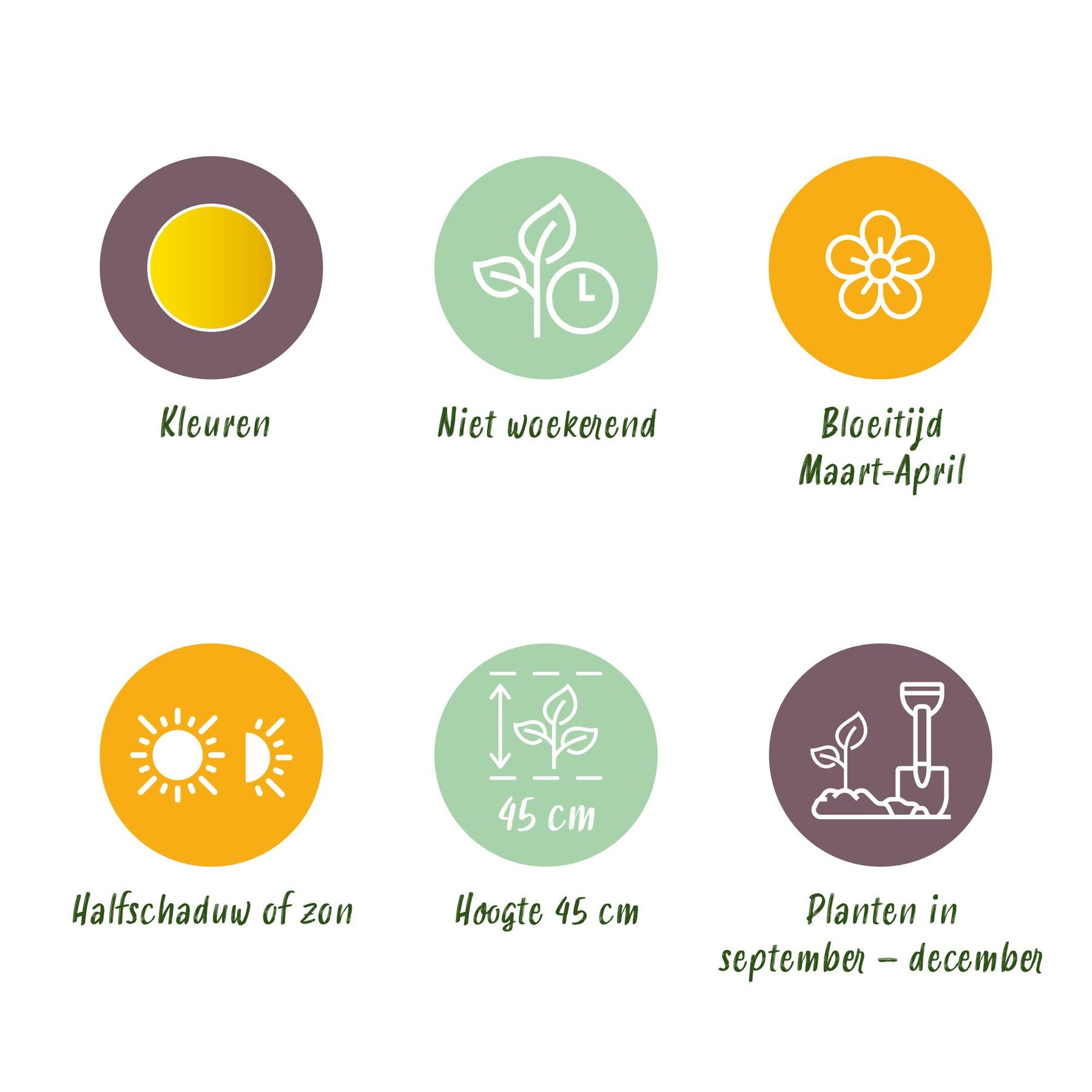 Deze bloembol is eenvoudig te planten en vergt weinig onderhoud. Geniet van de schoonheid van de Narcissus Tete-A-Tete en laat uw tuin of balkon stralen!
