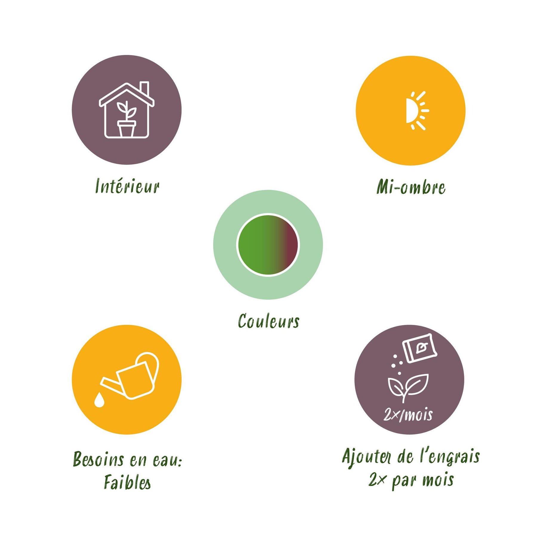 De bladeren van de Dracaena Marginata Bicolor zijn smal en puntig, met een levendige groene kleur die prachtig contrasteert met de paarse randen. Dit zorgt ervoor dat de plant een dynamisch element toevoegt aan uw woning of kantoorruimte. De levendige kleuren van de stengels en bladeren zorgen voor een frisse en energieke uitstraling, waardoor de ruimte een uitnodigende en aangename sfeer krijgt.