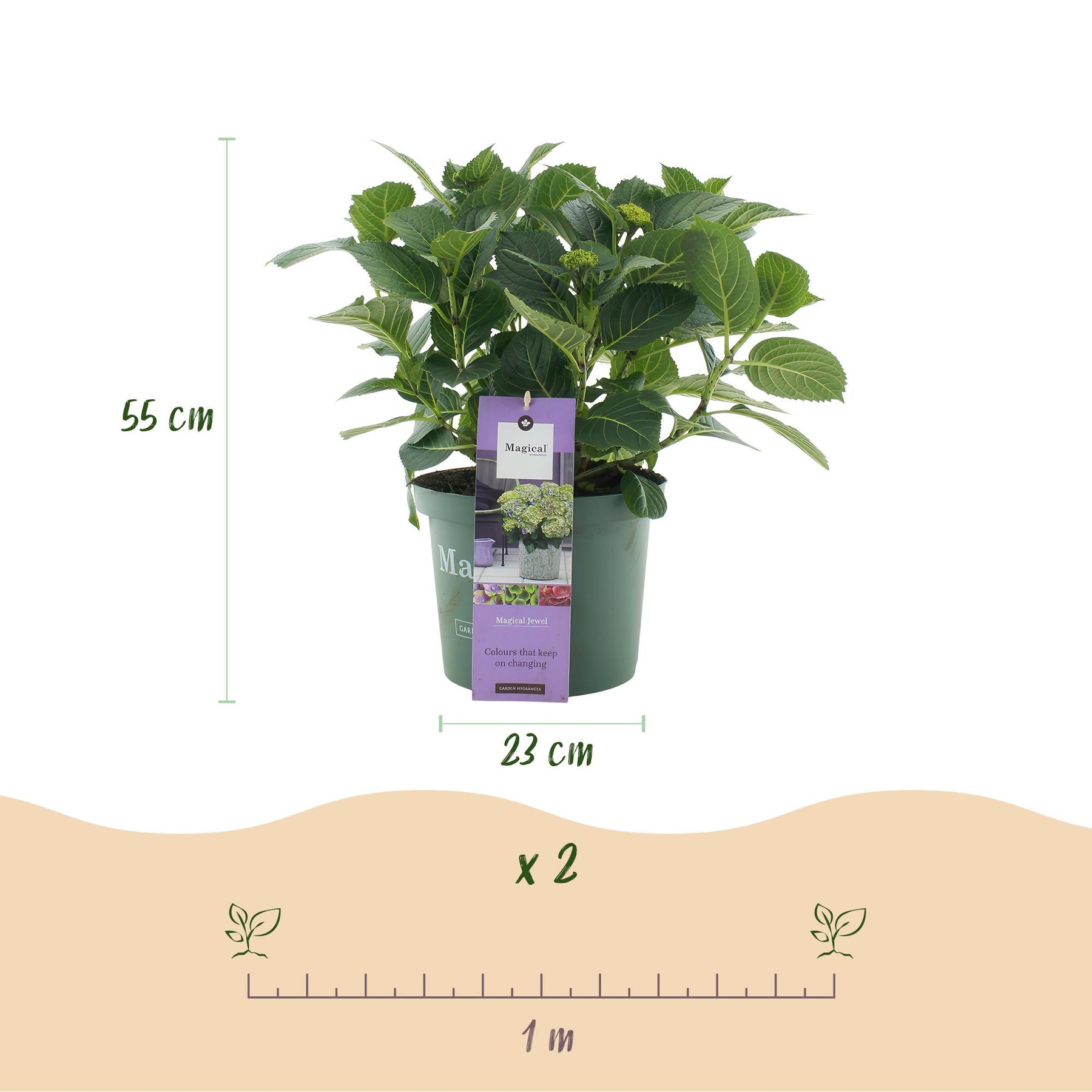 Deze hortensia is perfect voor in een border, waar hij kan uitblinken tussen andere planten. Daarnaast doet hij het ook geweldig in een pot op het terras of balkon, waardoor u volop kunt genieten van zijn schoonheid, ongeacht de ruimte die u heeft.