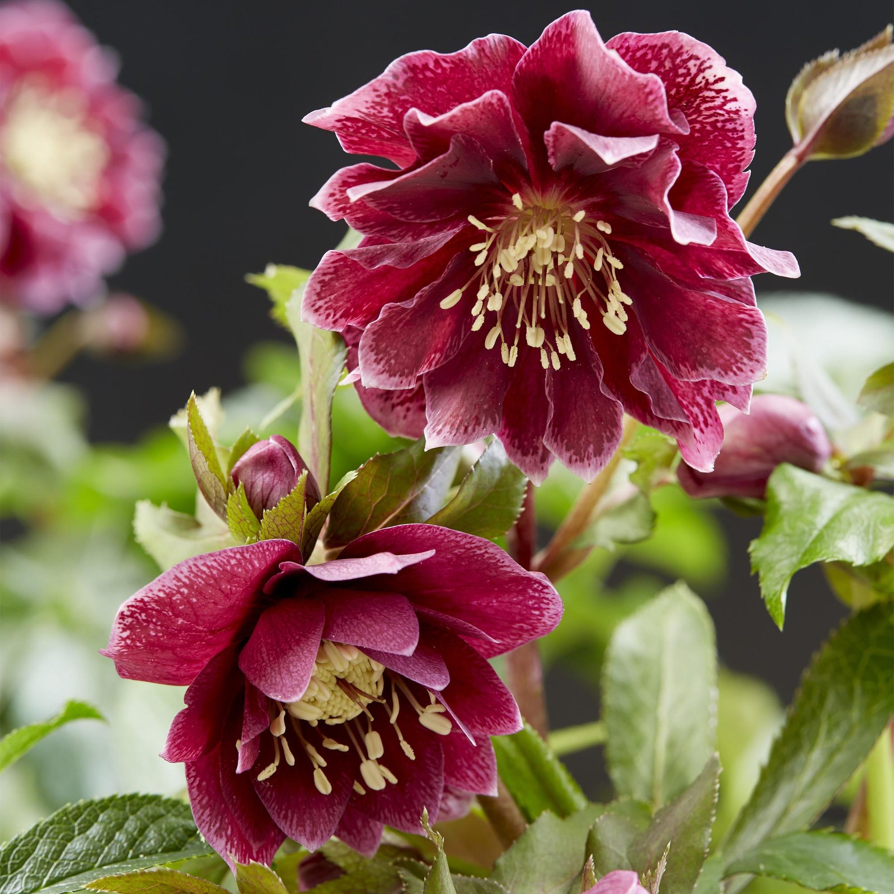 Laat de Helleborus orientalis Double Ellen Red uw tuin verfraaien met zijn elegante uitstraling en winterse charme.
