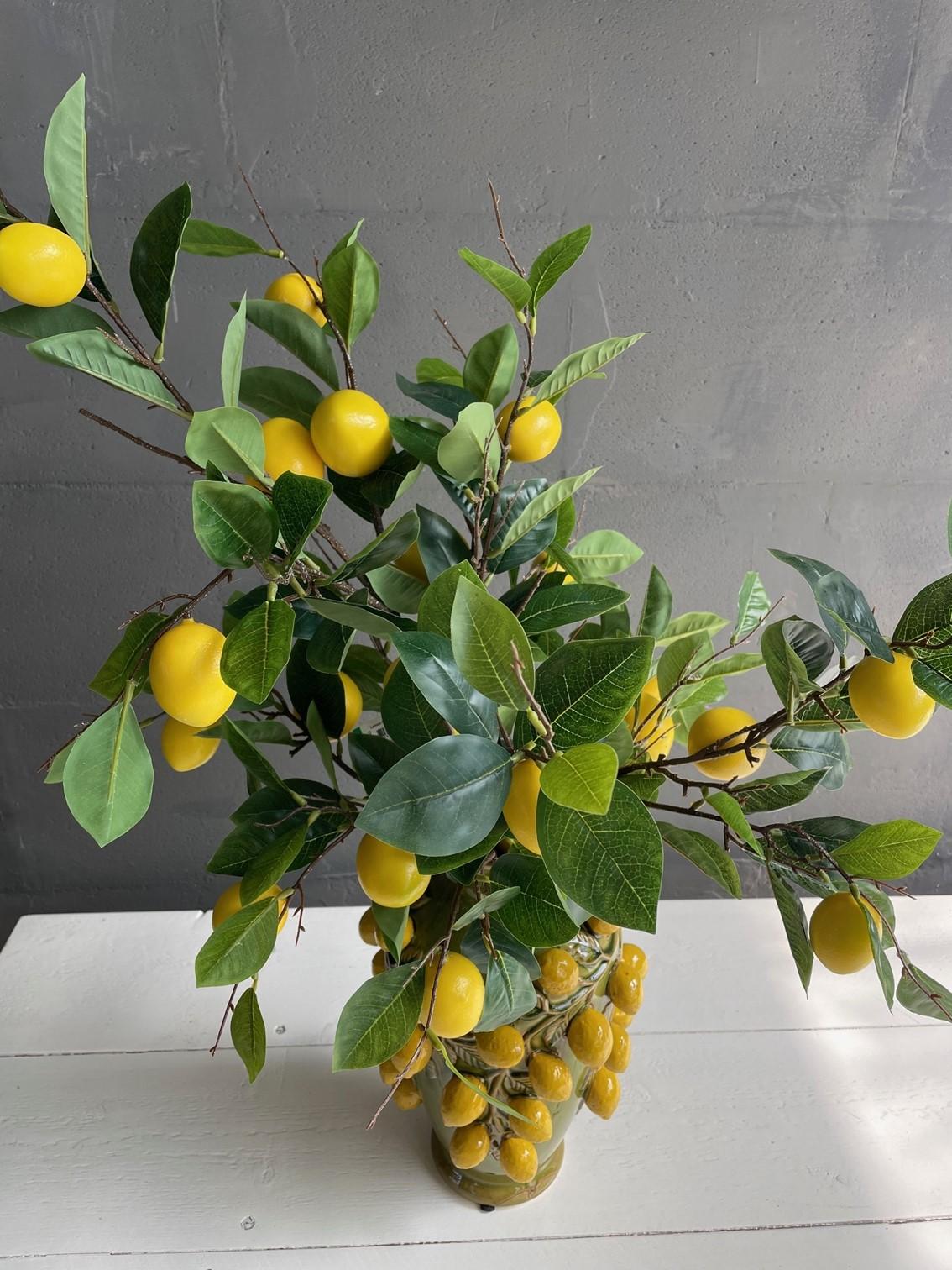 Geniet van vrolijkheid in huis met dit fantastische boeket! De citroenen zijn haast niet van echt te onderscheiden en geven dit product een unieke uitstraling. Het boeket van 95 cm hoog is samengesteld door een topbloemist en voorzien van de beste materialen en details. Door de hoge kwaliteit ben je ervan verzekerd dat het boeket jarenlang mooi blijft.