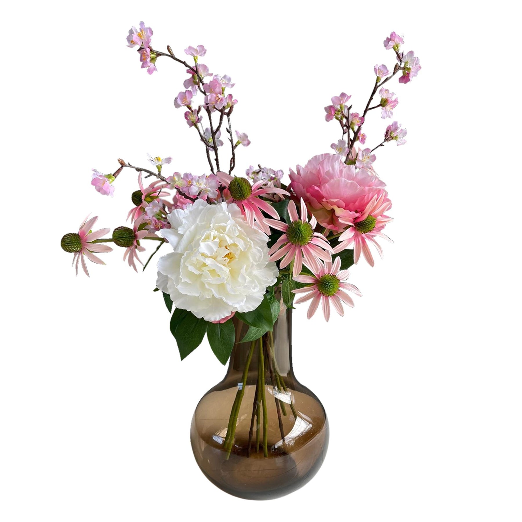 Een aanwinst voor ieder interieur! Dit vrolijke kunstboeket geeft een boost aan werkelijk ieder ruimte. De schitterende roze details geven het boeket een zomerse uitstraling. Het is een geweldige manier om je interieur op te fleuren. Het kunstboeket is van hoge kwaliteit en met zorg samengesteld door een topbloemist. De bloemen blijven lang mooi, waardoor je er voor een lange tijd plezier van hebt. En dat allemaal zonder dat je ze hoeft te onderhouden!