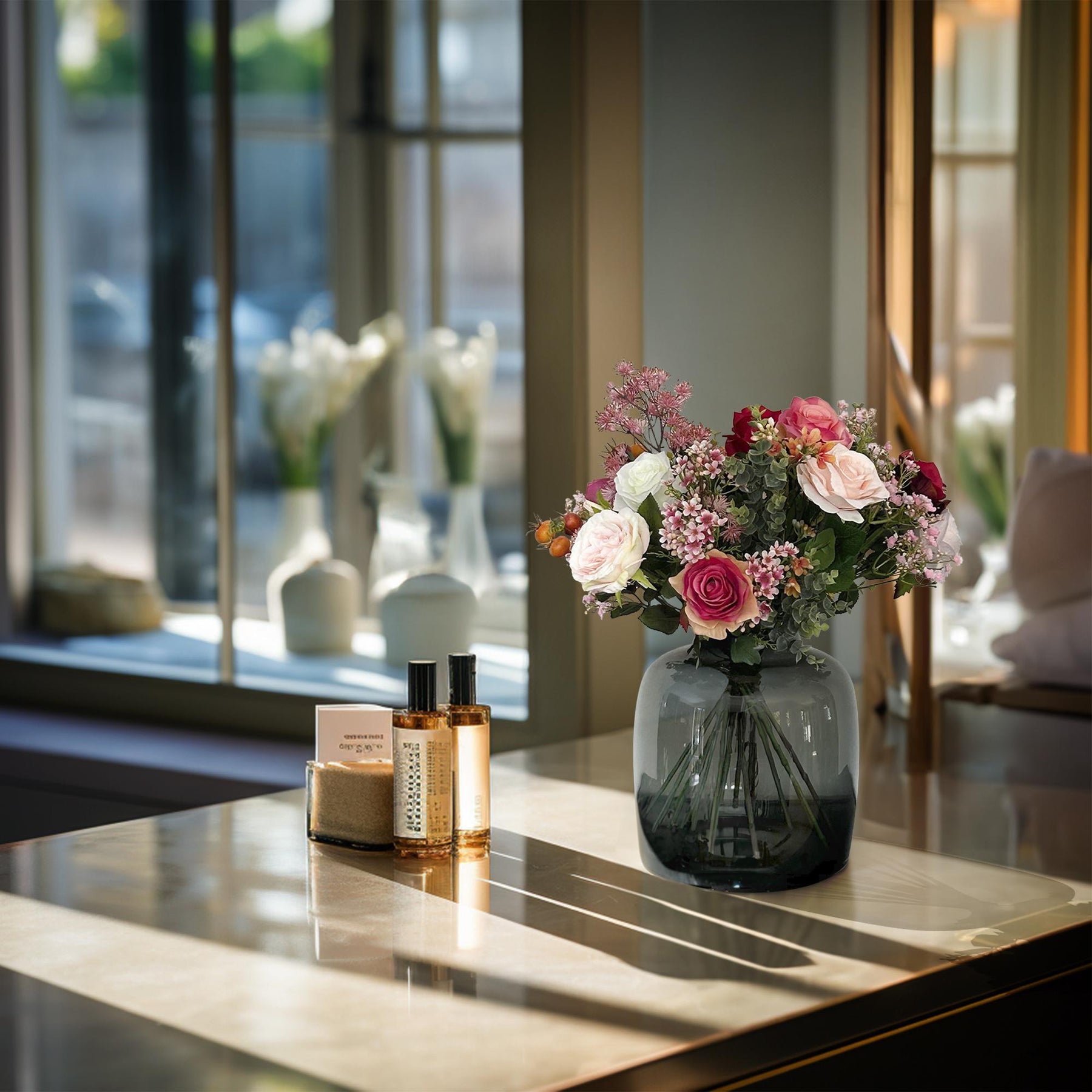 Weelderig kunstboeket met rozen