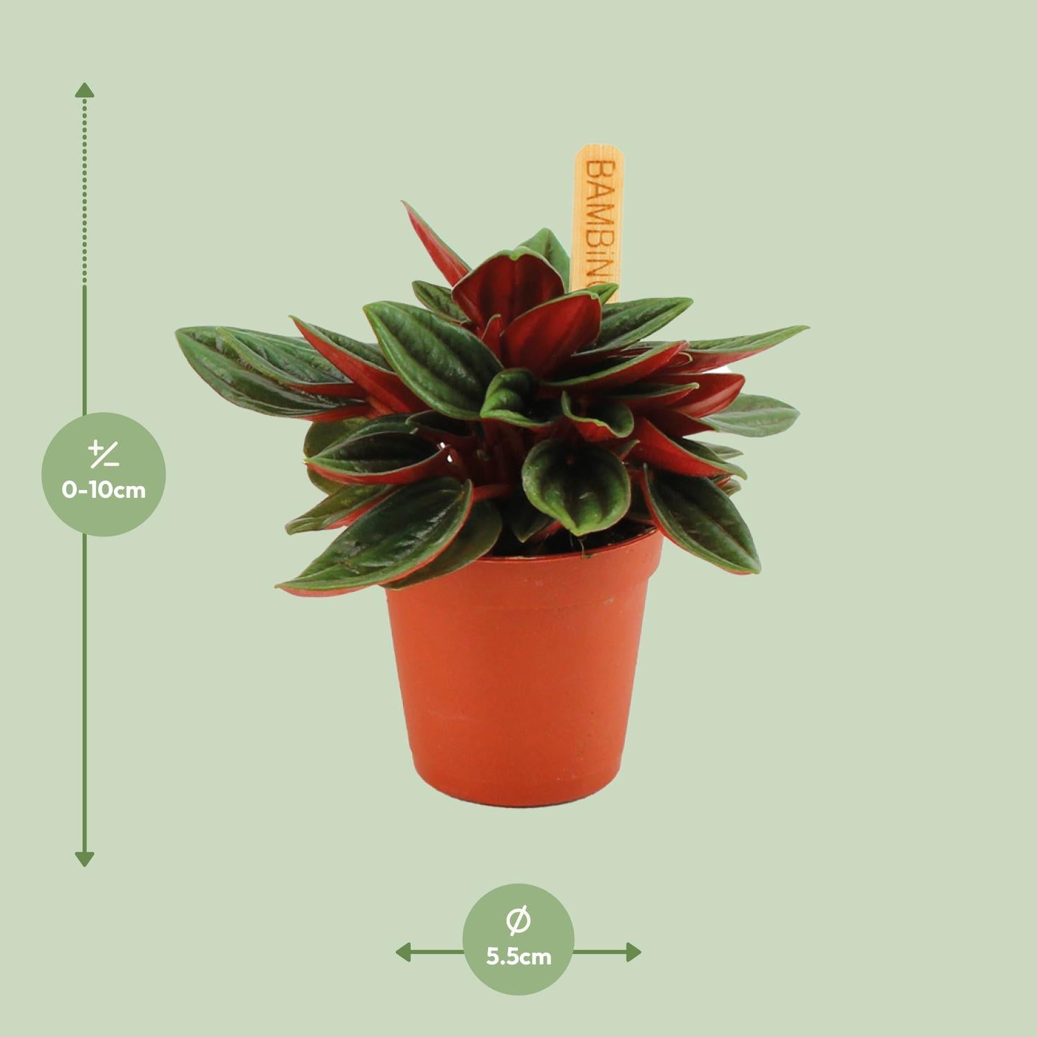 Deze Peperomia wordt geleverd in een pot van 5,5 cm, perfect voor kleine ruimtes.De huidige hoogte van deze Peperomia is ongeveer 10 cm, waardoor het een compacte keuze is voor elke kamer.Plaats deze plant op een plek met halfschaduw, omdat hij gedijt in gedeeltelijk zonlicht.Peperomia verzorgen is eenvoudig, dankzij de lage onderhoudsbehoeften en vergevingsgezinde aard.Een opmerkelijk kenmerk van deze Peperomia zijn de aantrekkelijke, glanzende bladeren die een vleugje elegantie toevoegen aan elke ruimte.