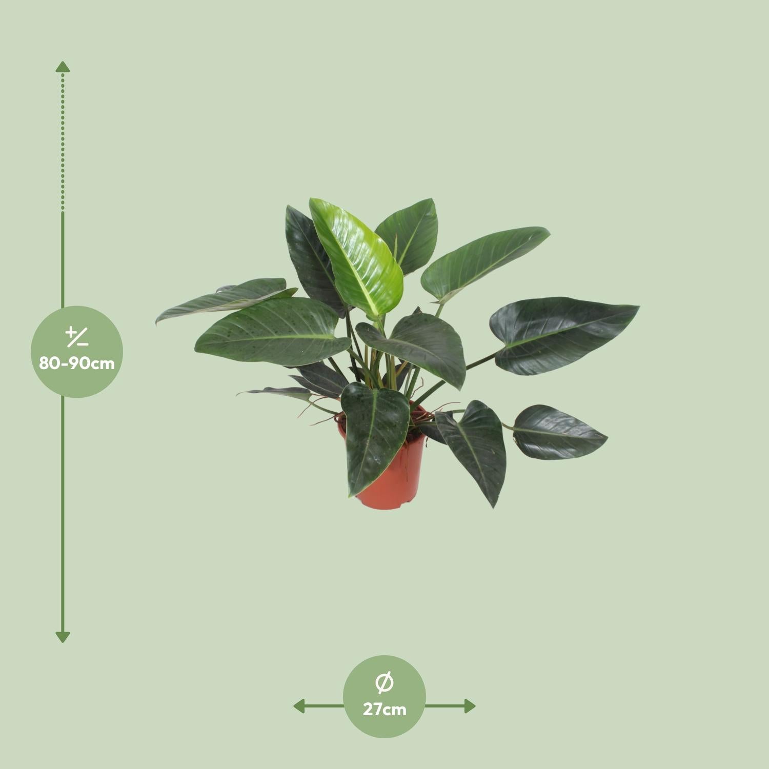 Breng de weelderigheid van het tropisch regenwoud in huis met onze Philodendron Congo Green. Deze prachtige kamerplant, ook bekend als Philodendron, komt oorspronkelijk uit de diepe jungles van Congo. Met zijn glanzende, diepgroene bladeren en gemakkelijke verzorging is het een perfecte aanvulling op elke binnenruimte. Door zijn compacte formaat is hij geschikt voor zowel kleine als grote kamers. Creëer een rustige en serene sfeer met de Philodendron Congo Green en geniet van de schoonheid van de natuur, gewoon thuis. Winkel nu en transformeer je ruimte met deze heerlijke en trendy kamerplant. Philodendrons gedijen goed op een plek met halfschaduw, waar direct zonlicht vermeden wordt. Ze geven er de voorkeur aan om eens per week water te krijgen, waarbij de bovenste centimeter grond mag opdrogen voordat er opnieuw water gegeven wordt. Deze planten groeien het beste in goed doorlatende grond, zoals een mengsel van veenmos, perliet en potgrond. Het wordt aanbevolen om de Philodendron tijdens het groeiseizoen, meestal van de lente tot de zomer, te bemesten met een gebalanceerde kamerplantenmeststof die elke 4-6 weken wordt toegediend. Het is belangrijk om de meststof te verdunnen tot de helft van de aanbevolen sterkte om te voorkomen dat de wortels van de plant verbranden.Wist je dat Philodendron Congo Green een van de meest populaire kamerplanten is? Met zijn weelderige, donkergroene bladeren en gemakkelijke verzorging voegt het een vleugje tropische elegantie toe aan elke ruimte. Deze plant is perfect voor SEO-optimalisatie, omdat hij zeer gezocht en gewild is door plantenliefhebbers. Het is echter belangrijk om op te merken dat hoewel deze plant er verleidelijk uitziet, het puur ter decoratie is! Dus onthoud, bewonder zijn schoonheid, maar weersta de verleiding om er een hapje van te nemen - deze prachtige Philodendron is niet eetbaar, maar simpelweg een prachtige toevoeging aan je binnenoase!- De Philodendron Congo Green is een populaire kamerplant met een potmaat van 27 cm, waardoor het geschikt is voor middelgrote tot grotere potten.- Met een hoogte van ongeveer 90 cm voegt de Philodendron Congo Green een indrukwekkende touch toe aan elke binnenruimte, en vult het met zijn levendige groene bladeren.- Ook bekend als Philodendron, wordt deze plant geliefd om zijn vermogen om te gedijen in gedeeltelijke schaduw, waardoor het een perfecte toevoeging is voor plekken met indirect zonlicht.- Een interessant feit over de Philodendron Congo Green is dat het behoort tot de Araceae familie, waaronder andere populaire planten zoals Monstera en Anthurium.- Het toevoegen van de Philodendron Congo Green aan je binnen tuin verhoogt niet alleen de esthetische aantrekkingskracht, maar helpt ook bij het zuiveren van de lucht door schadelijke gifstoffen te verwijderen, en bevordert daarmee een gezondere leefomgeving.