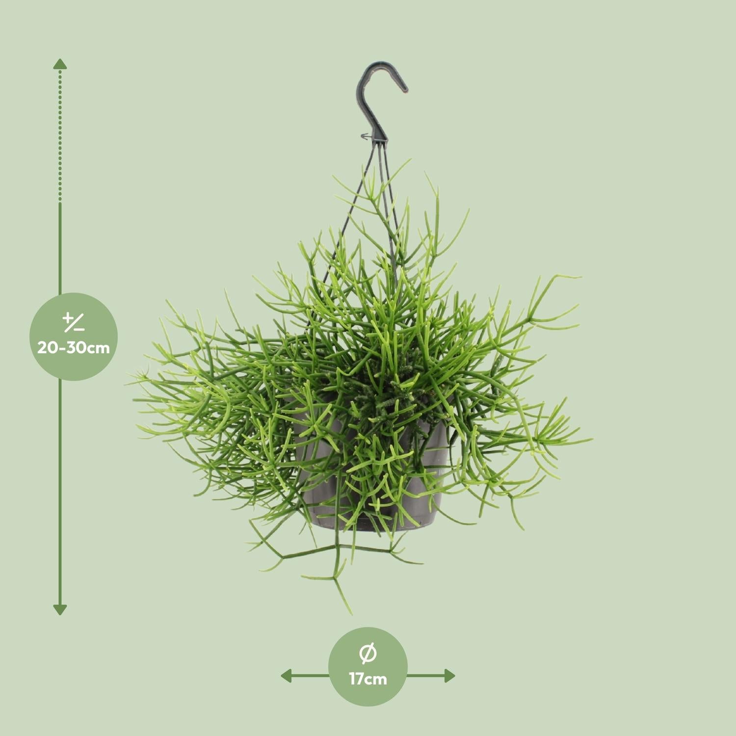 Maak kennis met de betoverende Rhipsalis Heteroclada, ook wel bekend als Rhipsalis. Deze prachtige kamerplant heeft een intrigerende oorsprong en komt uit de tropische regenwouden van Centraal- en Zuid-Amerika. Met zijn unieke hangende bladeren en delicate ranken voegt deze plant een vleugje elegantie toe aan elk interieur. Rhipsalis gedijt goed in omgevingen met weinig licht, waardoor het een perfecte keuze is voor binnenruimtes. Door zijn onderhoudsvriendelijke karakter en luchtreinigende eigenschappen is het een ideale toevoeging aan uw huis of kantoor. Haal de natuur naar binnen met de moeiteloos mooie Rhipsalis Heteroclada. Om voor Rhipsalis te zorgen, moet je een plek vinden waar het half in de schaduw staat of in de zon en het eens per 8-10 dagen water geven. Plant het in goed doorlatende grond, bij voorkeur een mengsel van veenmos, zand en perliet. Bemest de plant tijdens het groeiseizoen, dat loopt van de lente tot het vroege najaar, elke 4-6 weken met verdunde, evenwichtige meststoffen. Vermijd overbemesting, omdat dit schadelijk kan zijn voor de plant. Met deze eenvoudige stappen zal jouw Rhipsalis goed gedijen en schoonheid brengen in jouw binnen- of buitenruimte.Wist je dat Rhipsalis Heteroclada, ook bekend als de rode koraalcactus, een unieke vetplant is die inheems is in regenwouden? Zijn dunne, boogvormige stelen en levendige rode kleur maken het een populaire keuze voor binnenhuisdecoratie. Het is echter belangrijk op te merken dat deze plant strikt voor decoratieve doeleinden is en niet geconsumeerd mag worden. Zijn heldere verschijning brengt leven en een vleugje tropische schoonheid in elke ruimte, waardoor het een fantastische toevoeging is aan je huis of kantoor. Onthoud gewoon dat je het met je ogen bewondert, niet met je smaakpapillen!- Rhipsalis Heteroclada is een unieke plant met een potmaat van 17 cm, waardoor het een uitstekende keuze is voor kleinere ruimtes of tafelbladen.- Deze soort Rhipsalis groeit meestal tot ongeveer 25 cm hoogte, waardoor het een elegante en compacte toevoeging is aan elke binnen- of buitenruimte.- Rhipsalis Heteroclada staat ook wel bekend als Rhipsalis en is een populaire keuze onder plantenliefhebbers vanwege zijn kenmerkende uiterlijk.- Deze plant gedijt in gedeeltelijke schaduw. Het geniet van een plek met gefilterd zonlicht, waardoor het geschikt is om bij ramen te plaatsen of onder een schaduwrijke boom.- Een leuk feitje over Rhipsalis is dat het een epifytische cactus is, wat betekent dat het van nature groeit op bomen of andere planten in plaats van in de grond. Deze unieke aanpassing stelt het in staat om voedingsstoffen en vocht uit de lucht en regen op te nemen.