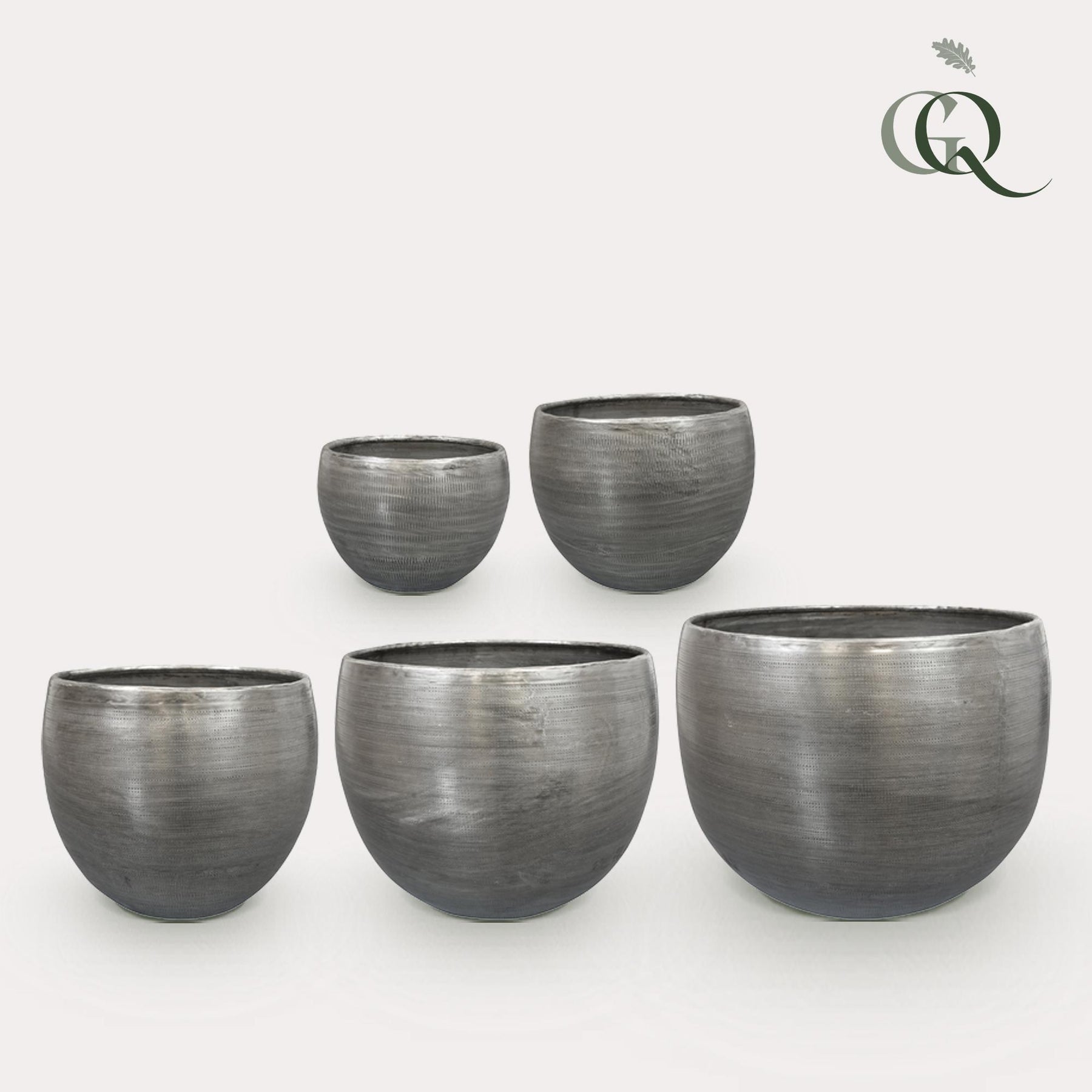 Set van 5 zilveren bloempotten